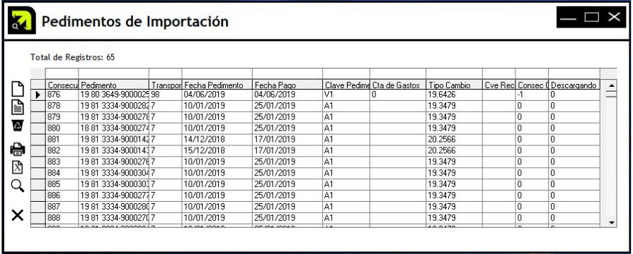 Una vez seleccionado el periodo a revisar, la conciliación te permite auditar cuantitativamente los pedimentos, primer opción del menú de Pedimentos – Pedimentos en integra y no en glosa, son pedimentos que sobrarían que por algún error el sistema se capturaron y no coinciden con los pedimentos que están en el datastage.