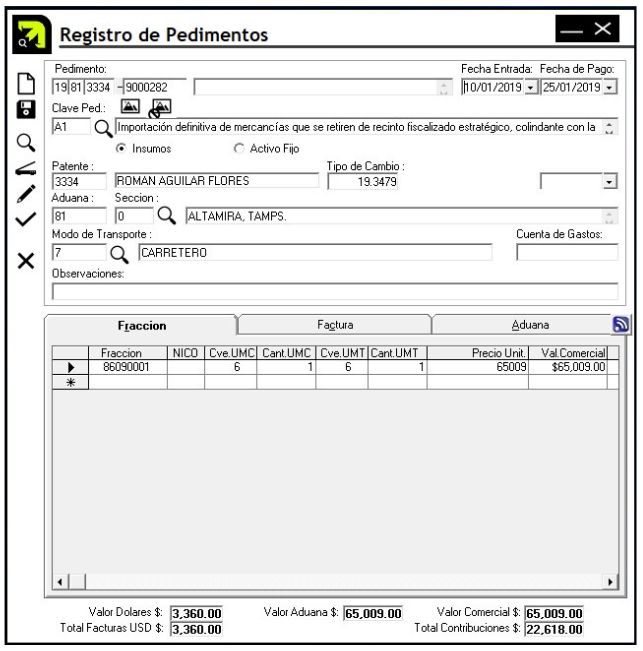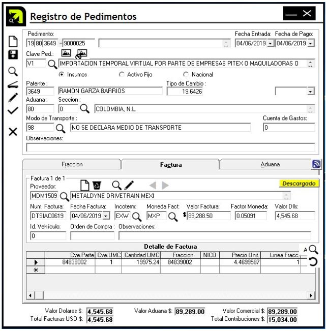 En la segunda opción del menú de Valores – Valores a nivel partida, aquí se puedes auditar valores de las partidas de pedimento como cantidad umc/umt, unidad de medida umt/umc, IGI, IVA, valor comercial, valor en aduana, etc.
